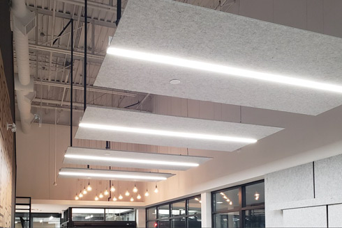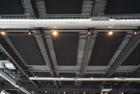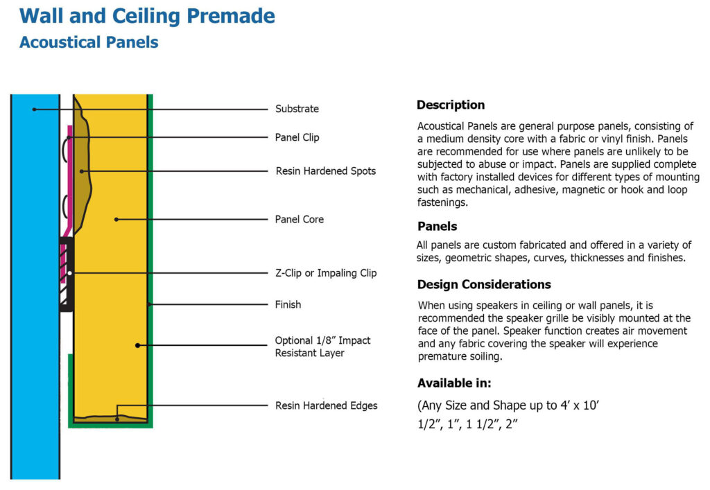 Acoustically Fabric Wrapped Ceiling Panels offer versatile solutions for managing sound in diverse interior settings. These panels feature a high-density fiberglass acoustical core beneath the fabric, ensuring effective sound control. Compliant with Class A fire rating standards, they meet regulatory requirements for both public and private spaces. Our ceiling-mounted panels effectively address acoustic needs within a variety of interior spaces such as theaters, recording studios, classrooms, offices, call centers, restaurants, gymnasiums, community centers and more.