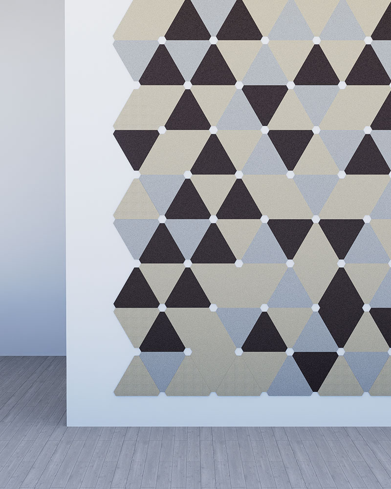 A diamond-shaped eco felt tile is a sustainable decorative piece typically used for creating intricate patterns or designs on walls or flat surfaces.