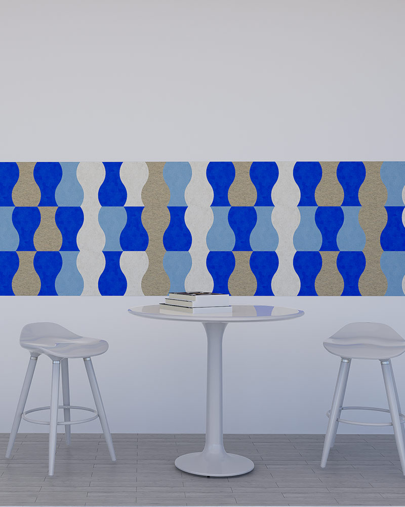 Available in 46 colors of 100% Wool Felt mounted to a high performing acoustic Eco Felt with standard or Bevelled edges. The modular tiles install easily with heavy-duty construction adhesive while providing sound absorption and all-natural texture.